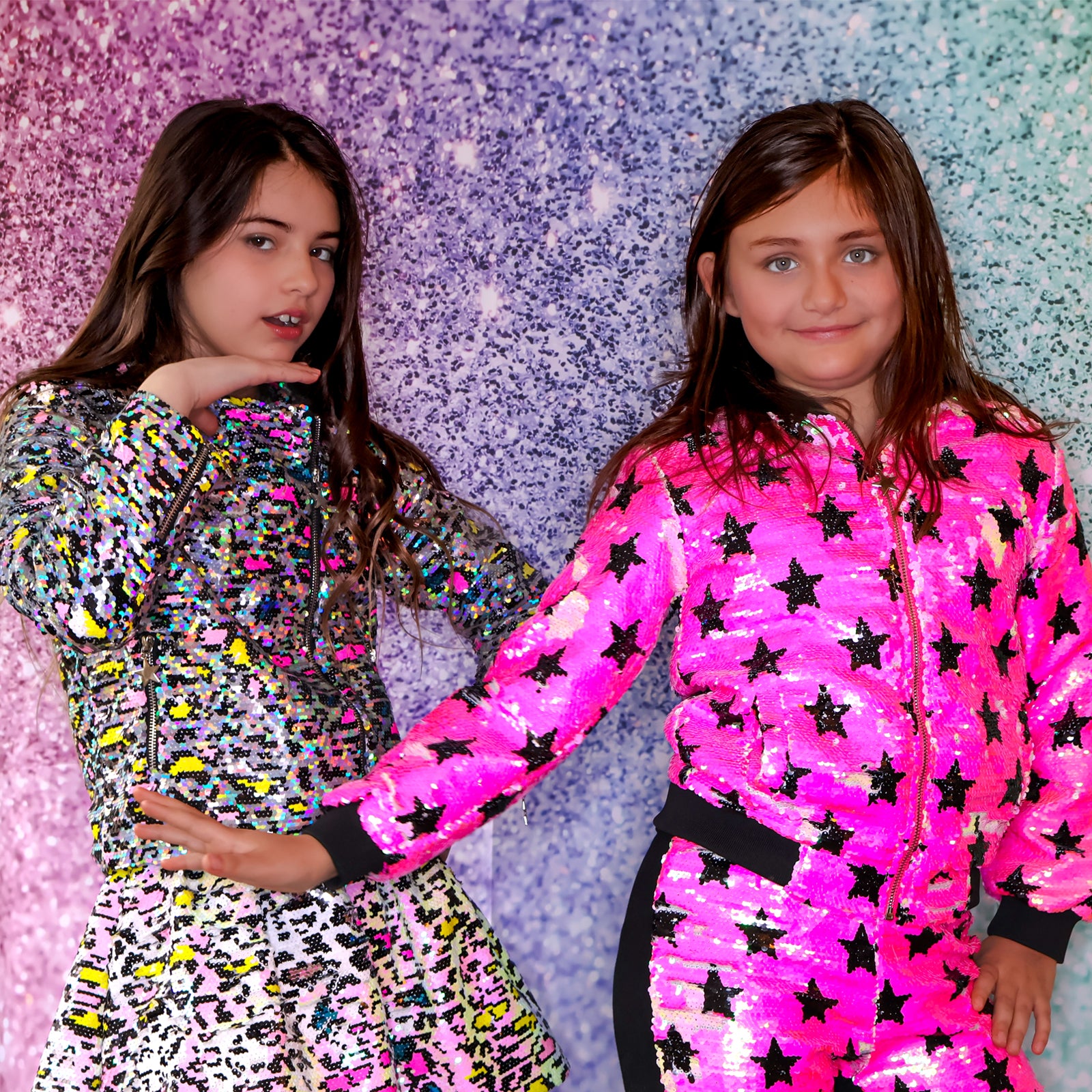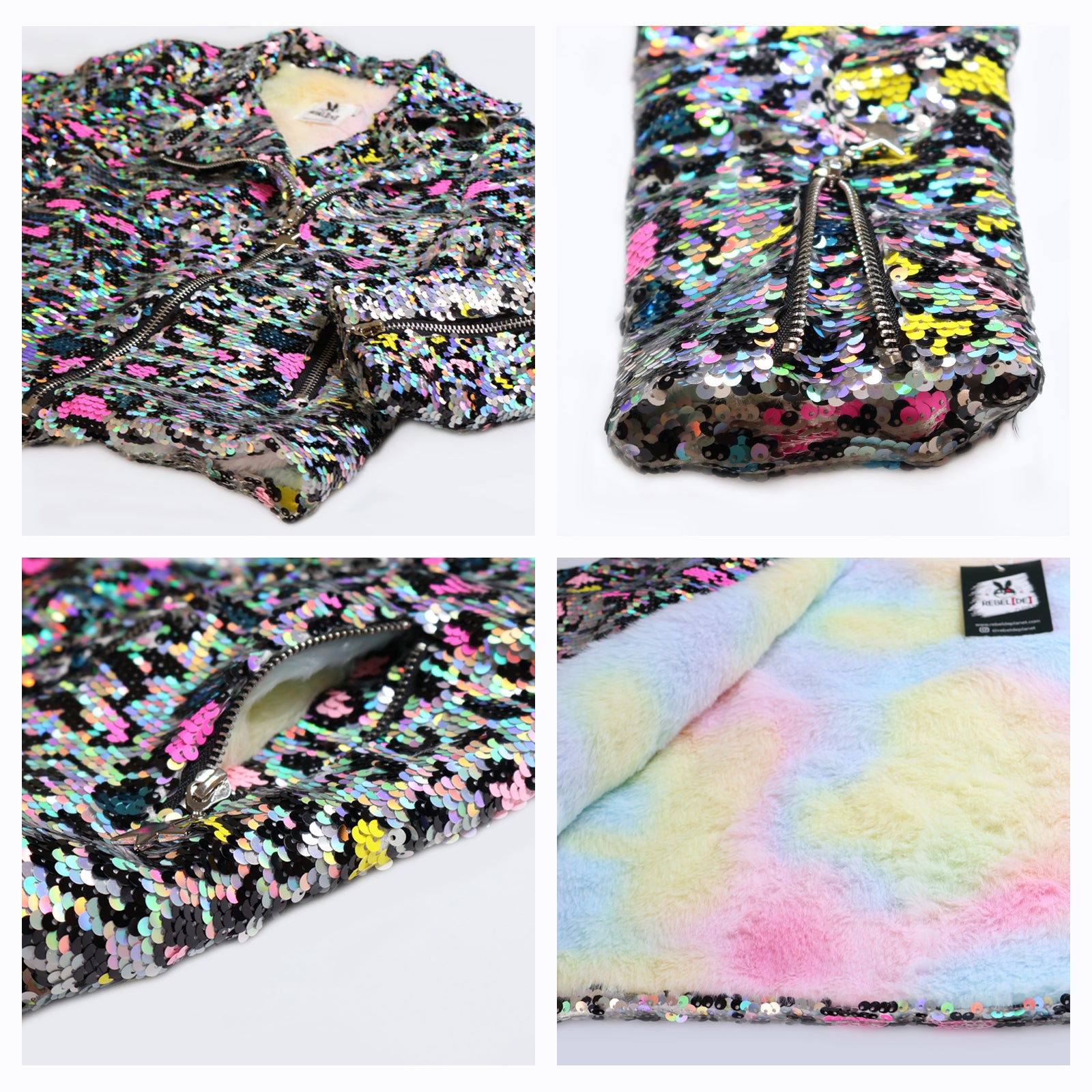 Feel like a Rock Star with our silver leopard flip sequin jacket. Super Fuzzy Wuzzy tie dye inner lining to stay warm in style. Side pockets with warm inner lining to keep little hands warm. Metallic strong zipper.